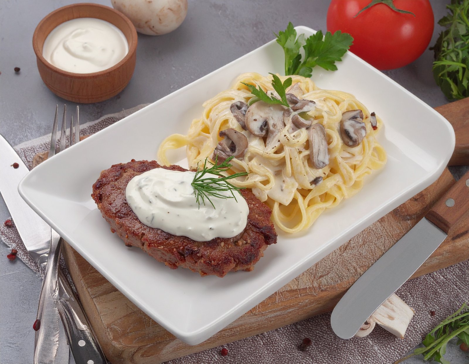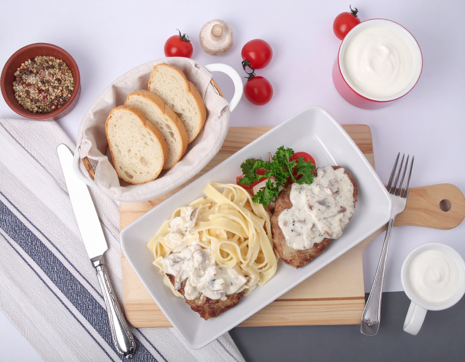 Savourez notre escalope Normande, une recette inspirée des saveurs authentiques de la Normandie. Cette escalope est généreusement nappée de crème fraîche onctueuse et de champignons fondants, créant un équilibre parfait entre douceur et richesse. Ce plat est servi avec du pain maison et un accompagnement au choix : salade, frites, tagliatelles ou haricots verts.