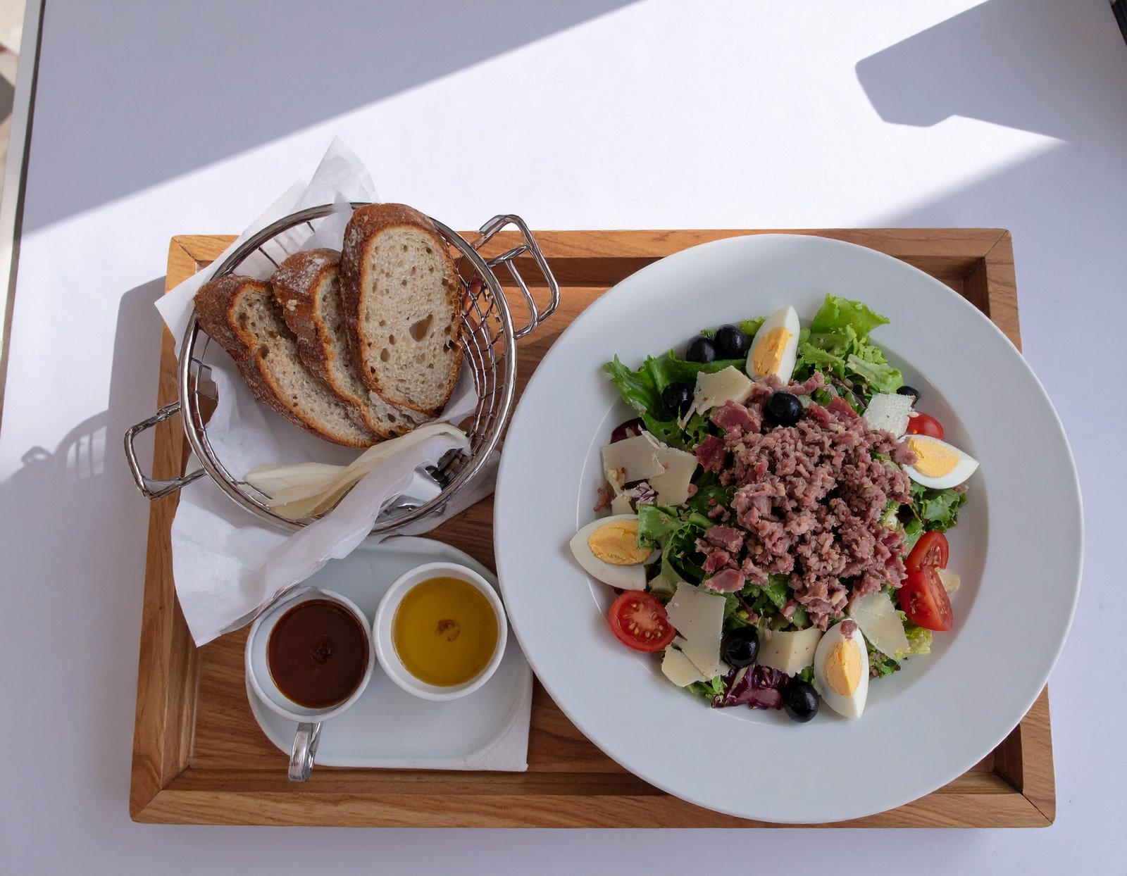 Envie d’un repas frais et nourrissant ? La salade italienne est le choix idéal ! Le thon apporte une note généreuse et parfumée, tandis que les tomates et la salade verte offrent légèreté et croquant. L’œuf et la mayonnaise ajoutent une touche onctueuse pour un équilibre parfait.