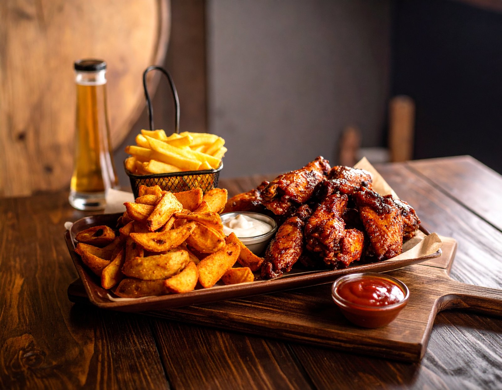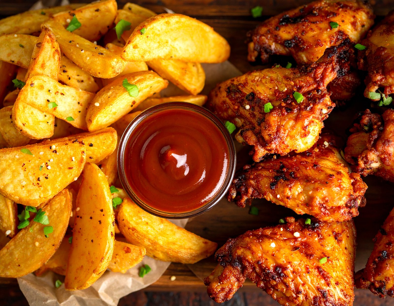 Craquez pour nos chicken wings dorées et juteuses ! Avec leur saveur légèrement épicée et leur panure croustillante, elles sont idéales pour partager entre amis ou en famille. Servies avec potatoes ou frites, elles garantissent un repas convivial et réconfortant.